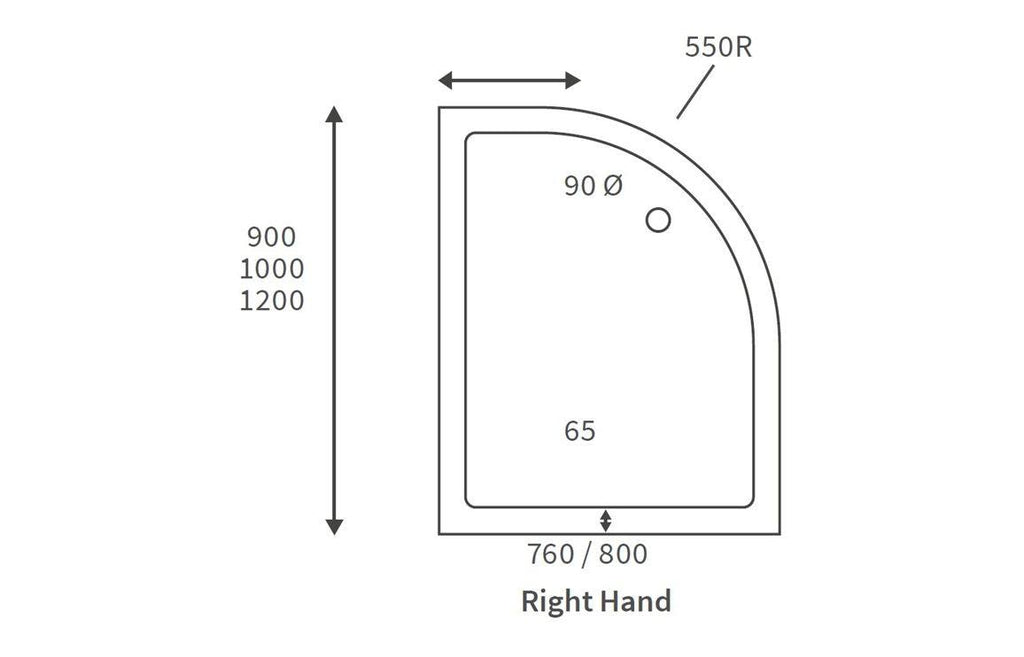 45mm Low Profile 1200x800mm Offset Quadrant Tray & Waste (RH) - White: Colour: White | Height (mm): 45 | Width (mm): 1200 | Depth (mm): 800 | Manufacturers Guarantee: 10 Years