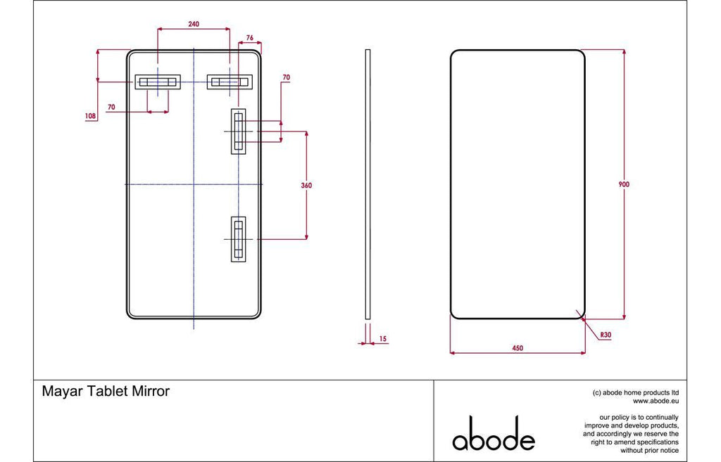- Dimensions: H 900 x W 450 x D 15mm