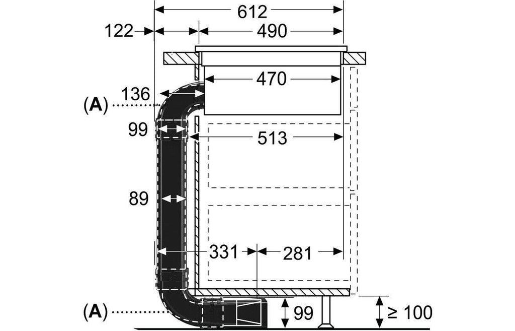 - Accessory kit for partly ducted recirculation configurations of your cooktop with integrated ventilation module in kitchens with worktop depths of 70 cm or larger