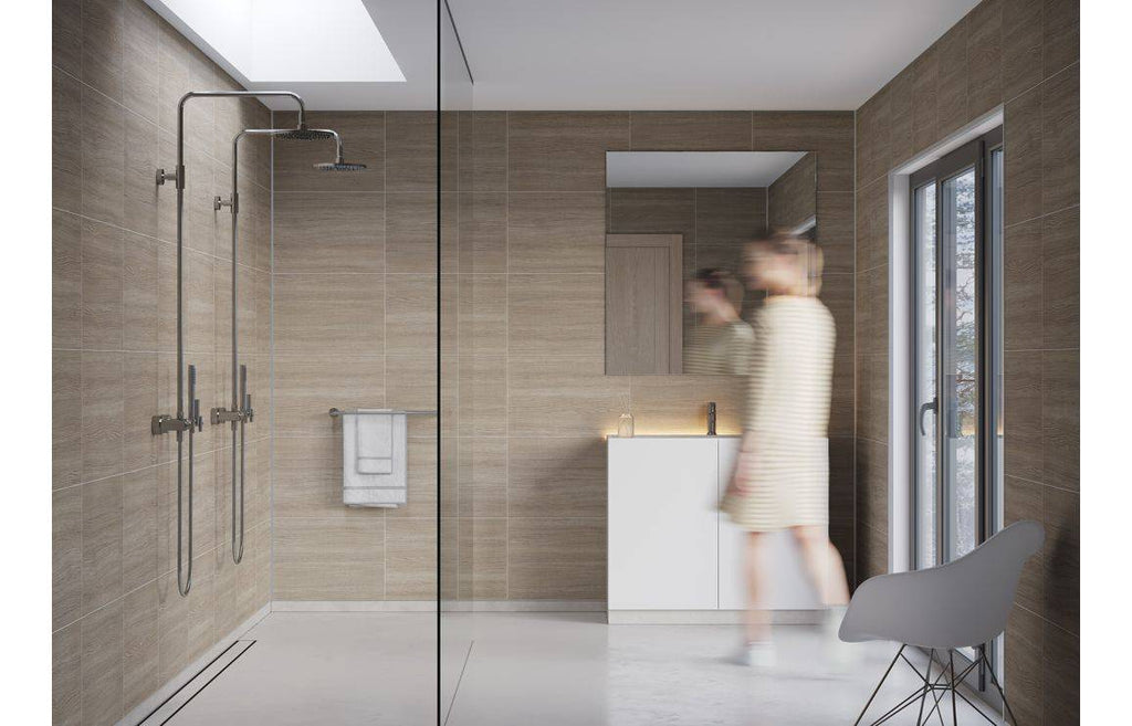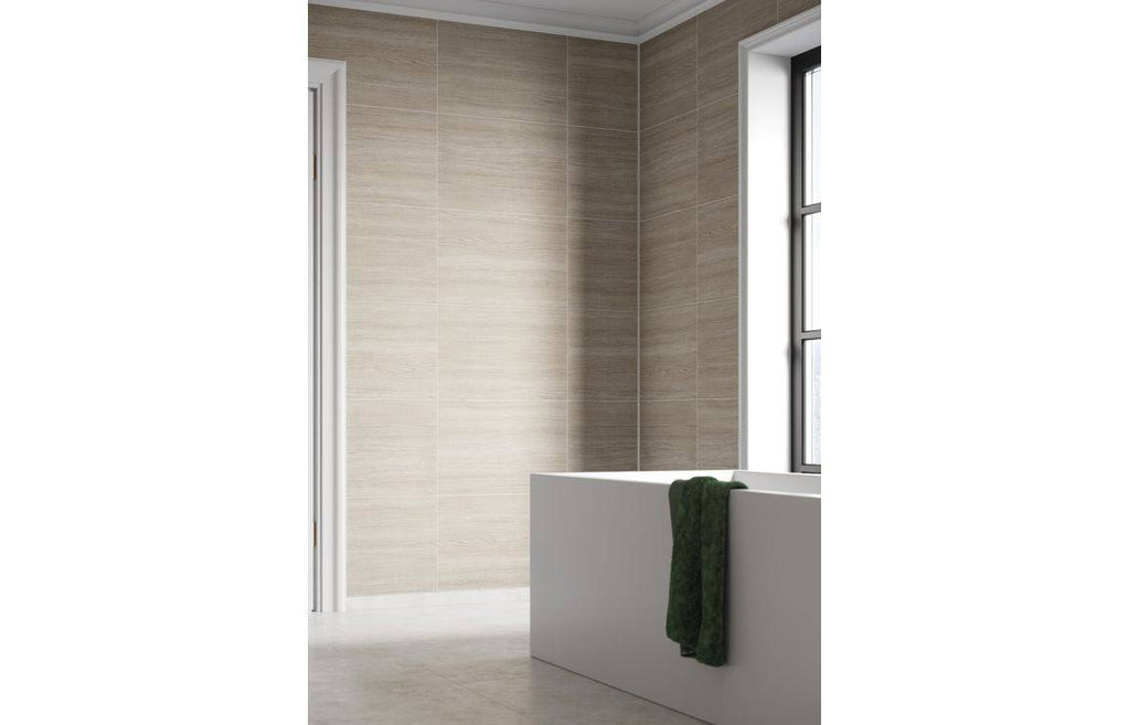 - A neutral, slightly grey pine effect to give your bathroom a natural and rustic look.