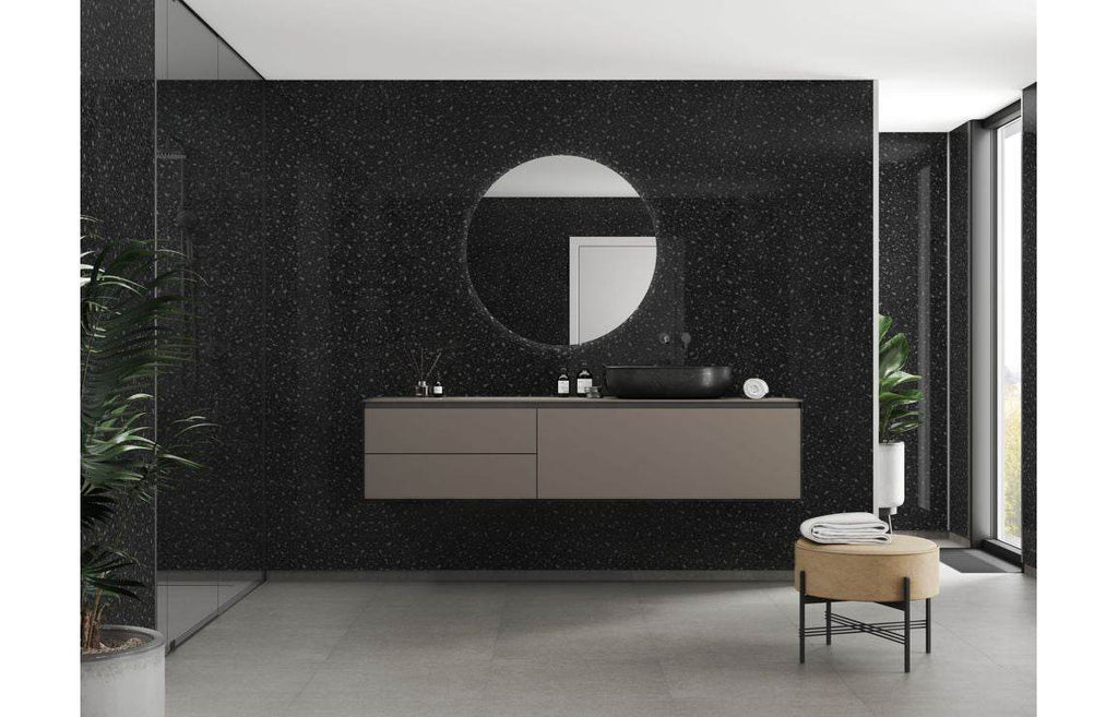 - This decor has a deep, black marble design to it. With it’s glossy finish and classic grey flecks it is both decorative and stylish.