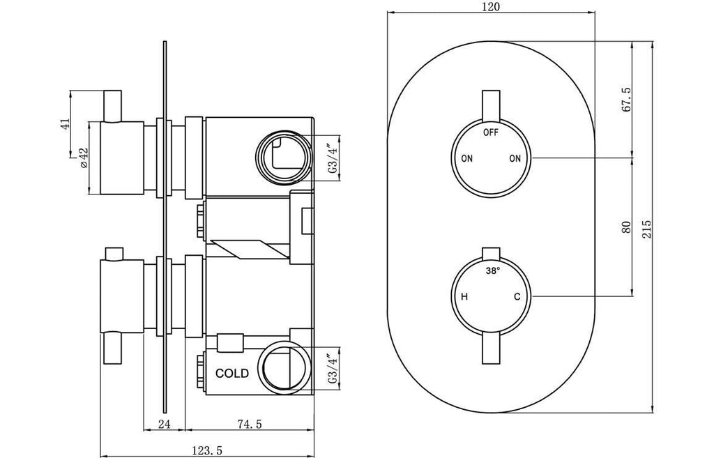 - Two outlet thermostatic valve