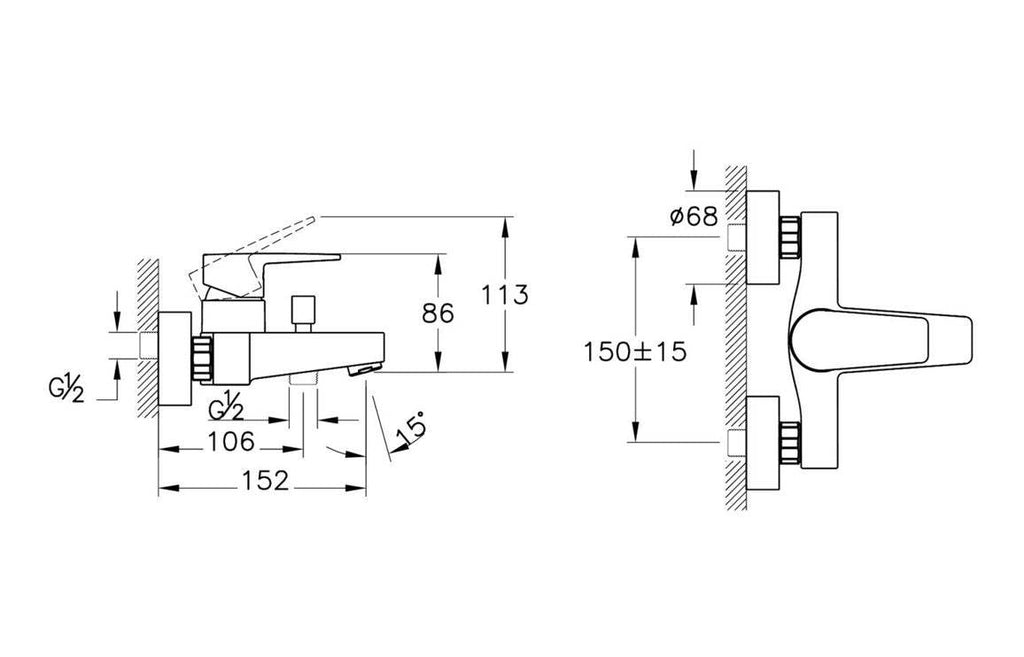 - Low Pressure Wall Mounted Bath/Shower Mixer